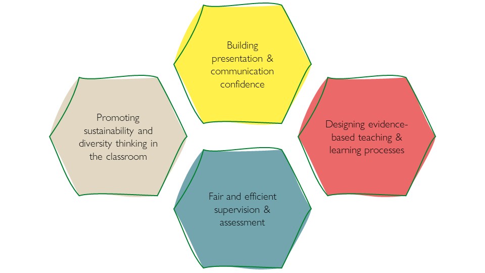 The various challenges facing higher education lecturers require ongoing skills development. The HDZ-HSG therefore offers courses and workshops in four key subject areas.