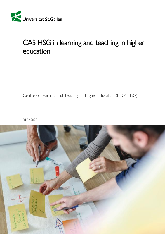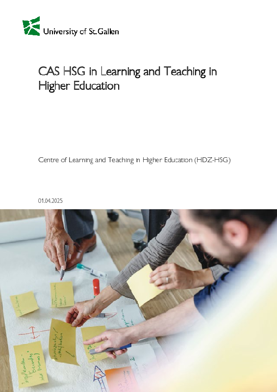 With the CAS HSG in Learning and Teaching in Higher Education, you are taking a holistic approach to developing your educational tools and reflective skills. You will learn to initiate and implement innovative teaching projects. In addition, the programme connects HSG lecturers with each other and contributes to the further development of the university's learning culture with the aim of sustainably promoting teaching quality at the HSG.