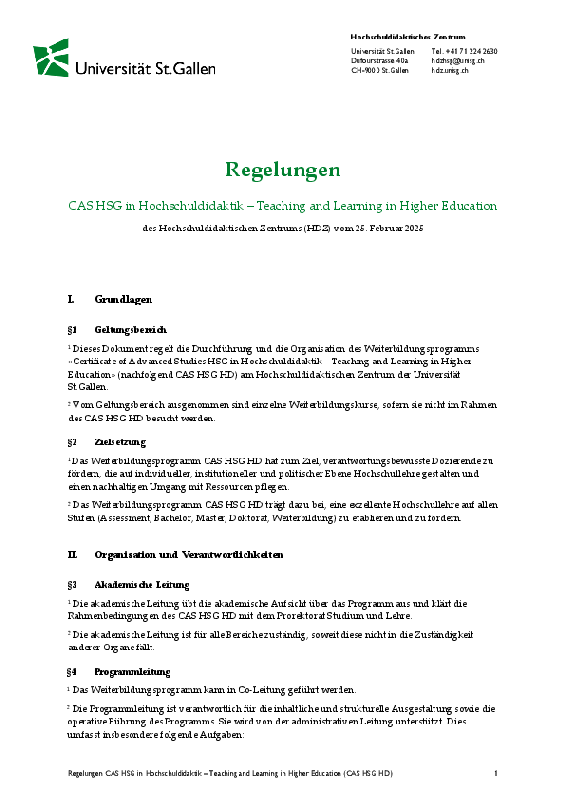 Regulations governing the organisation and delivery of the CAS programme, as well as the attendence requirements, are set out in the HDZ information sheet on absence regulations.