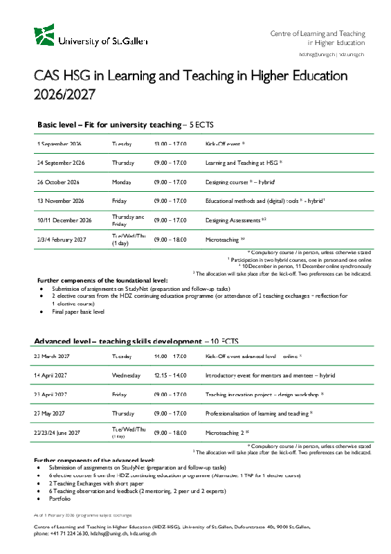 | 24 September 2026 | Thursday | 09.00 - 17.00 | Teaching and learning at HSG * |
